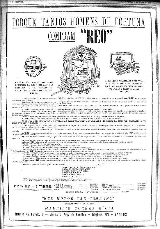 Eis a razão, também, porque os carros "Reo" são os únicos que têm resistido na Estrada de Rodagem de Santos a Cubatão.