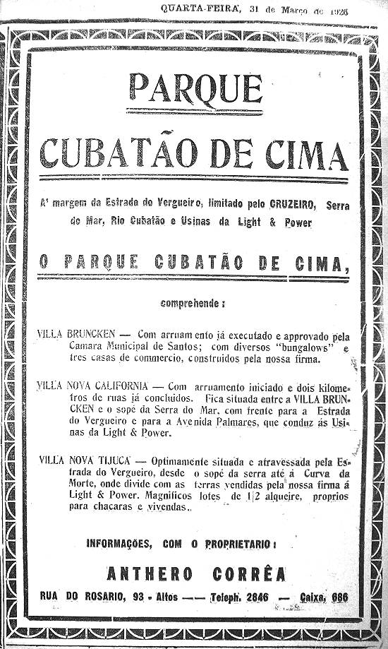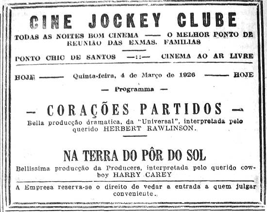 Detalhe do anúncio publicado no jornal santista A Tribuna, em 14 de março de 1926, página 20