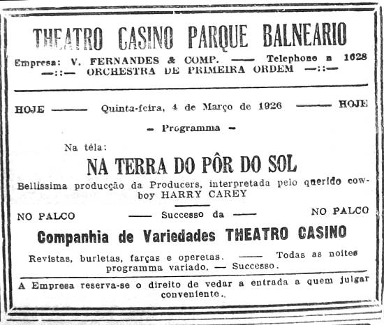 Publicado no jornal santista A Tribuna, em 4 de março de 1926, página 10
