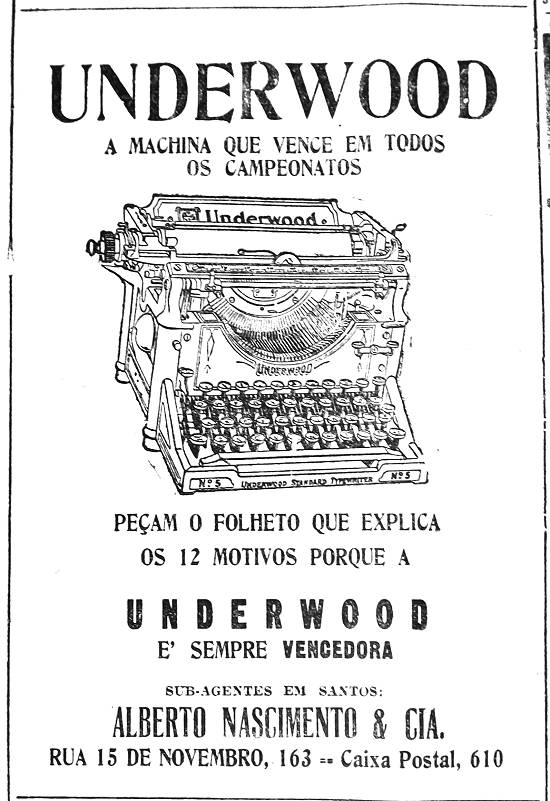 Máquina de escrever Underwood - Alberto Nascimento & Cia.