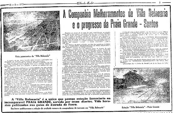 Ajunta-se a isso a ótima ideia da Companhia Melhoramentos de Vila Balneária, a qual está em condições de ajudar e favorecer as construções, a fim de tornar mais rápido o desenvolvimento
