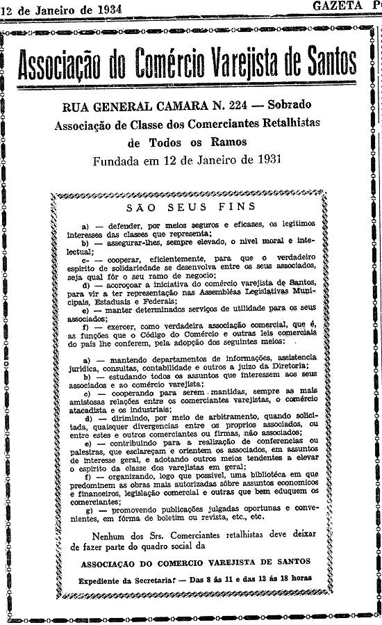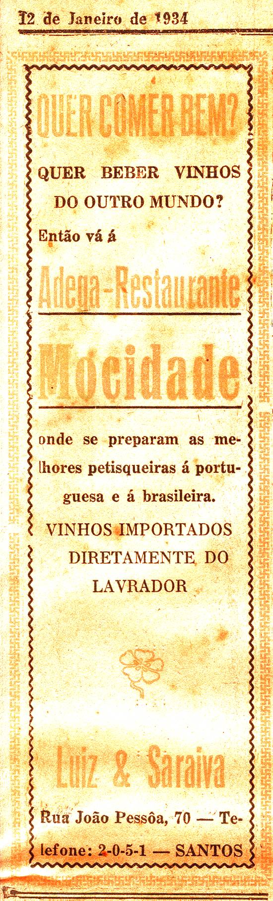Publicado no jornal santista Gazeta Popular em 12 de janeiro de 1934