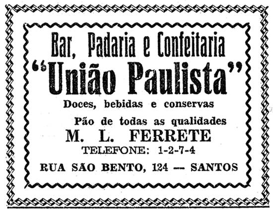 Bar, Padaria e Confeitaria União Paulista - de M L. Ferrete