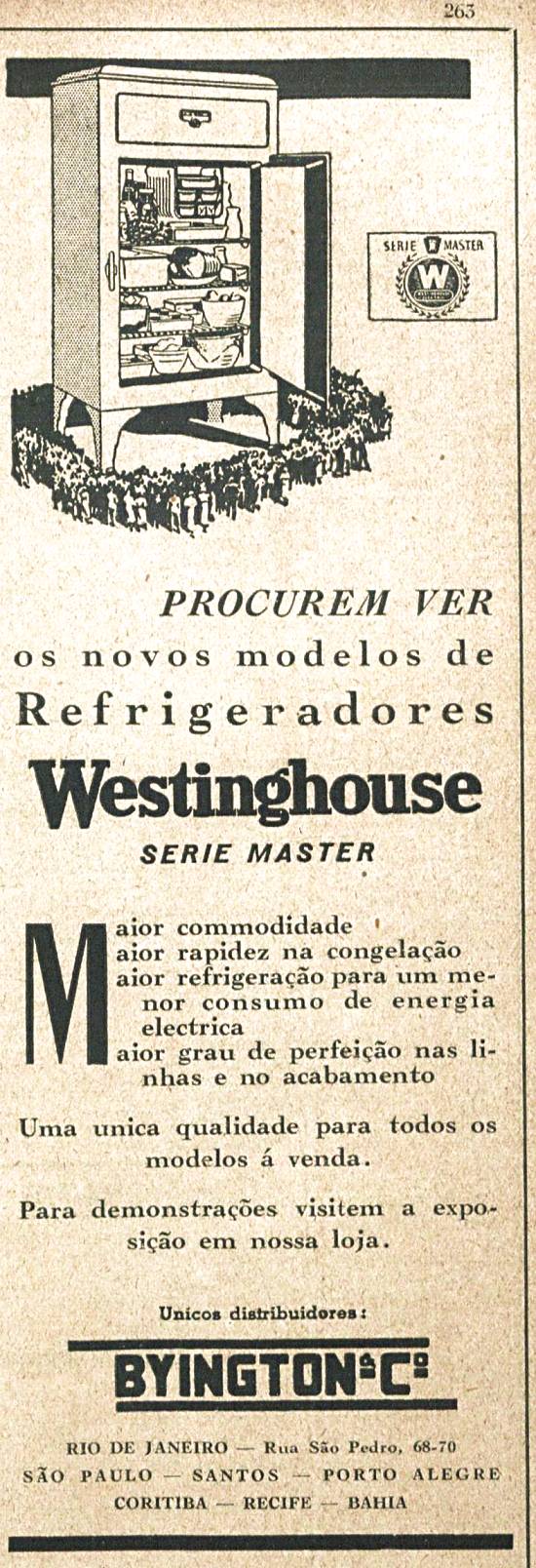 Refrigeradores Westinghouse - única distribuidora: Byington & Cia. - filial em Santos