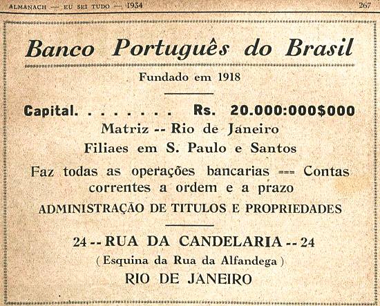 Banco Português do Brasil - matriz no Rio de Janeiro, filiais em S. Paulo e Santos