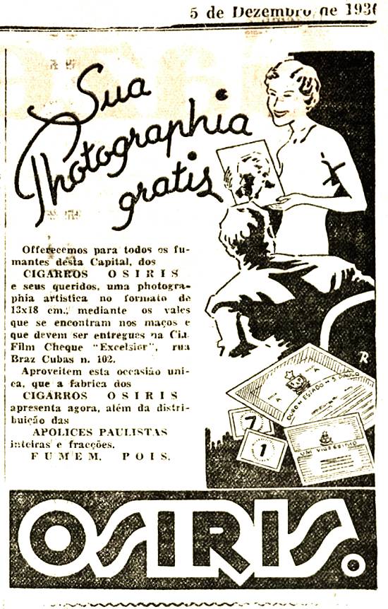 Fábrica dos Cigarros Osiris oferece vales-prêmios aos fumantes: "Fumem, pois, Osiris"