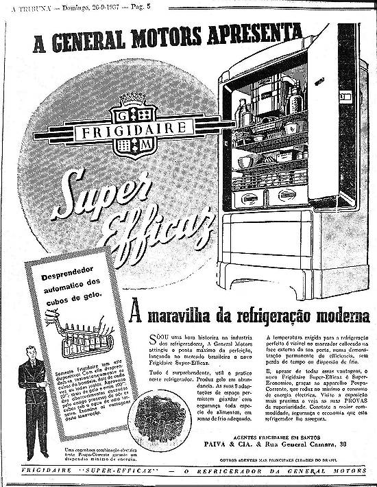 General Motors - geladeira Frigidaire - agentes Paiva & Cia. Publicado no jornal santista A Tribuna, em 2 de dezembro de 1937, página 16 (última)