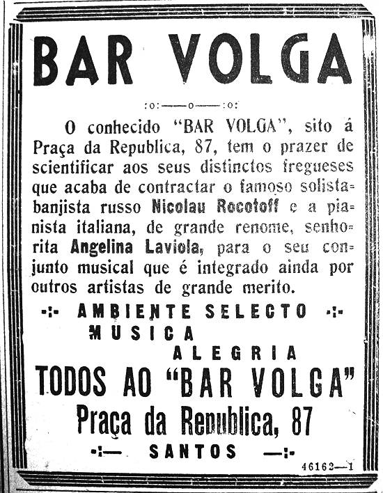 Bar Volga Publicado no jornal santista A Tribuna, em 1º de setembro de 1937, página 15