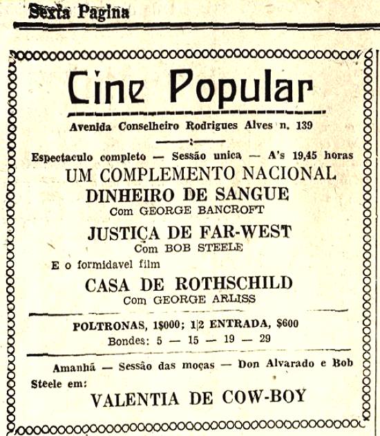 Cine Popular funcionouna Avenida Conselheiro Rodrigues Alves, 139