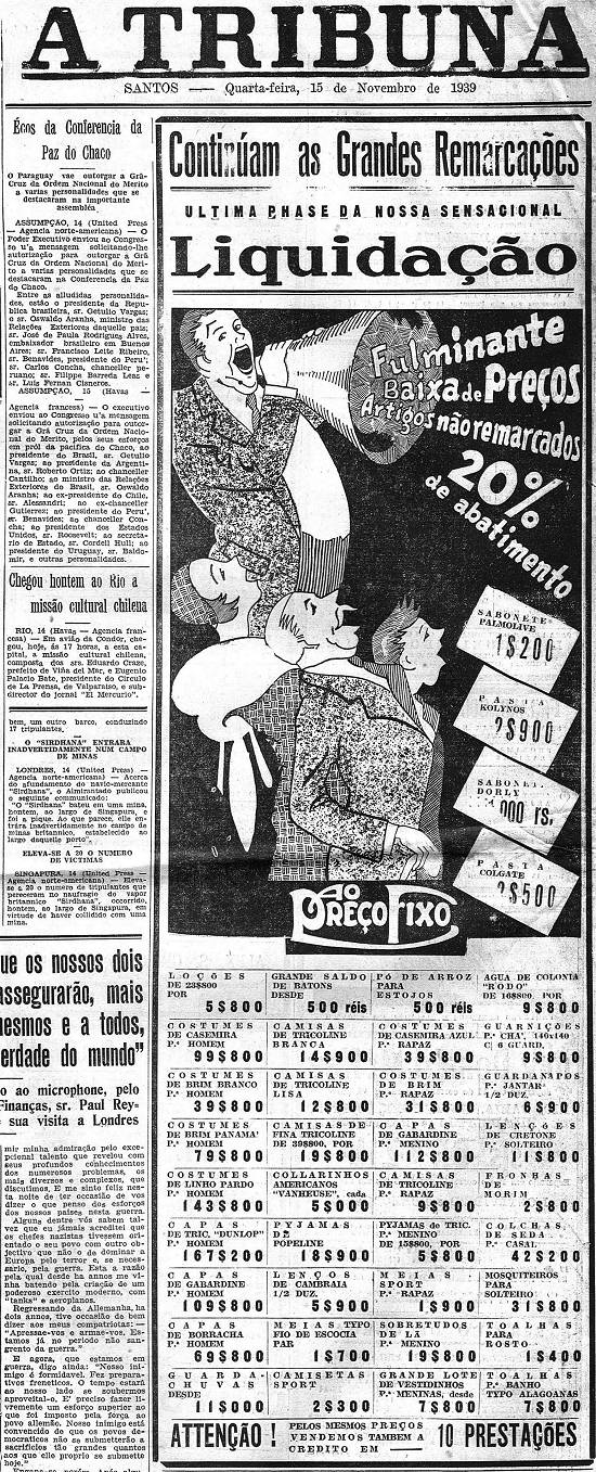 A Tribuna, em 15 de novembro de 1939