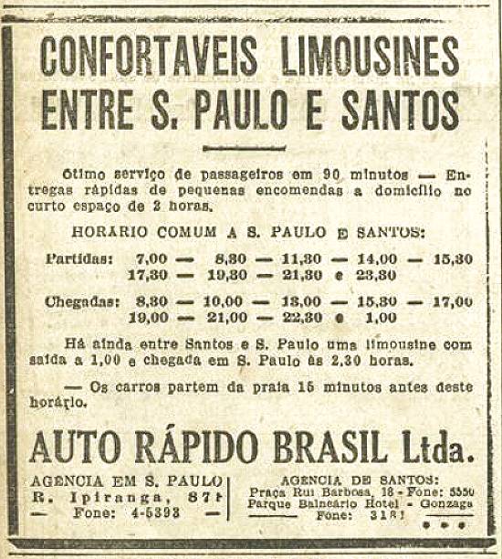 Limusines entre São Paulo e Santos, da Auto Rápido Brasil Ltda.