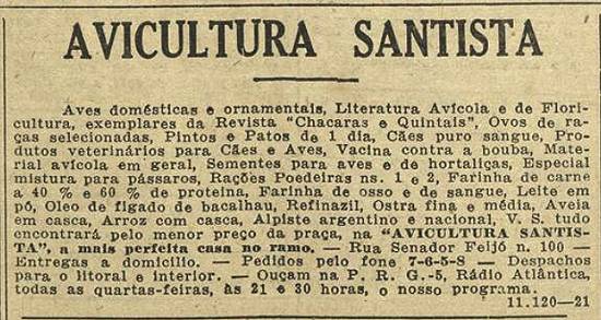 Avicultura Santista, "a mais perfeita casa do ramo", na Rua Senador Feijó, 100
