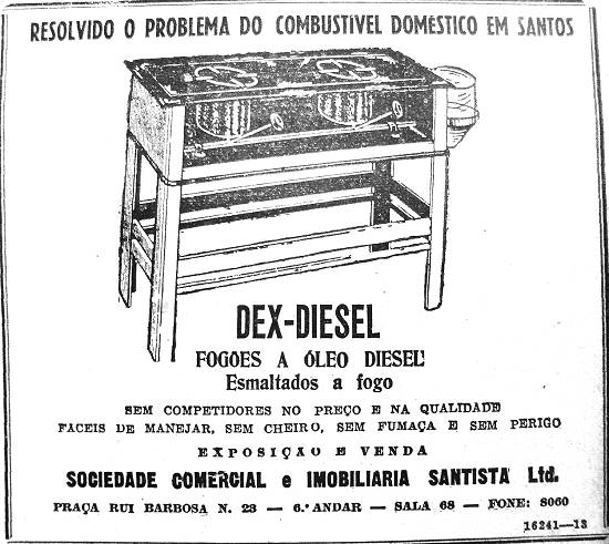 Fogão a óleo diesel - Sociedade Comercial e Imobiliária Santista Ltd.