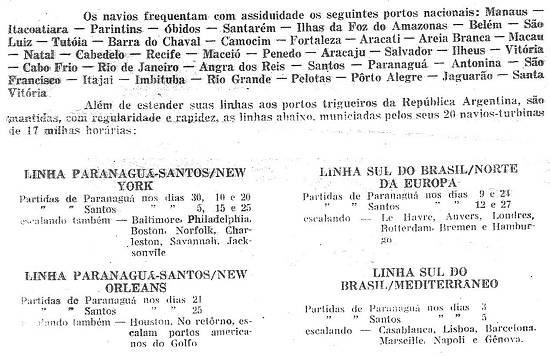 Companhia Comercial e Marítima, agentes gerais (e em Santos) da armadora lusa Companhia Colonial de Navegação, anunciando que seu navio Vera Cruz chegava ao Rio de Janeiro ao mesmo tempo que o presidente português Craveiro Lopes
