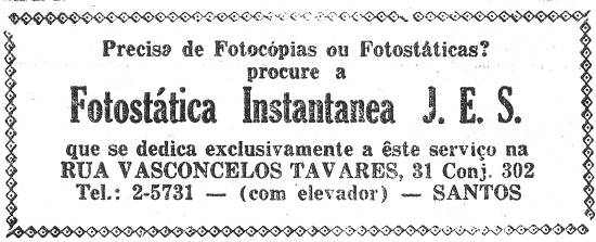 Publicado no jornal santista A Tribuna, em 16 de junho de 1957, página 24