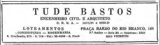 Tude Bastos, que teria um loteamento com seu nome em Praia Grande/SP