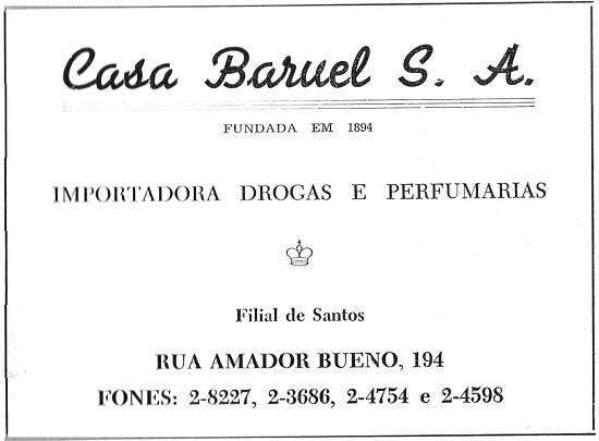 Casa Baruel Ltda. - importadora de drogas e perfumarias - fundada em 1894