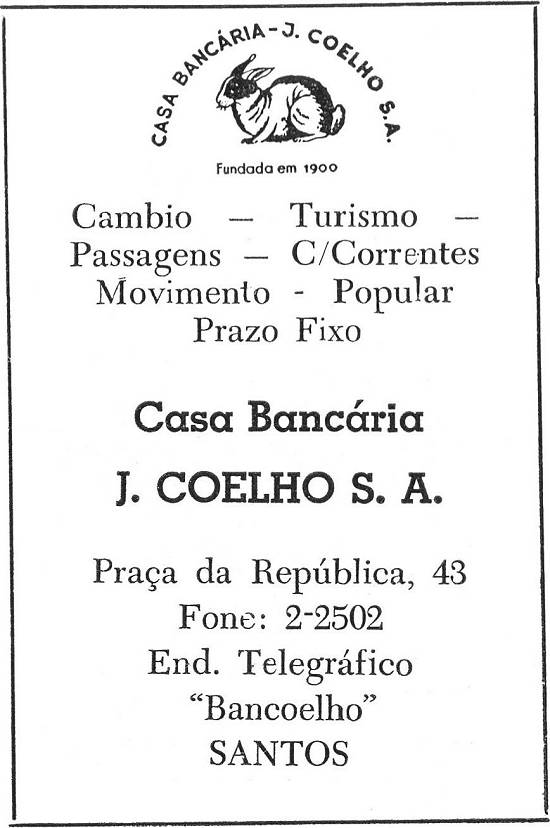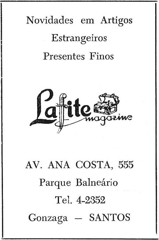 Publicado no Guia Santista - 1957-58 (Ano II - Nº 2), editado em Santos/SP por Neif Kfouri e Alfredo Muniz Jr. - contracapa 3 (exemplar no