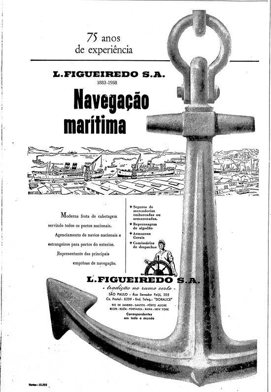 L. Figueiredo S. A. - Navegação Marítima - 75 anos (1883-1958). Agência em Santos