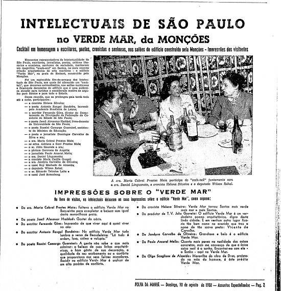 Publicado no jornal Folha de São Paulo em 10 de agosto de 1958, pág. 7 - Assuntos Especializados