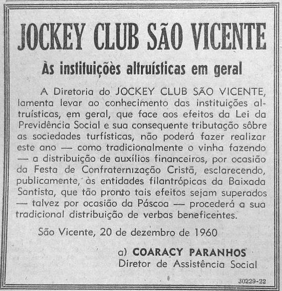 Publicado em 31 de dezembro de 1960 no jornal santista A Tribuna - página 3
