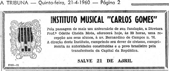 Publicado em 21 de abril de 1960 no jornal santista A Tribuna