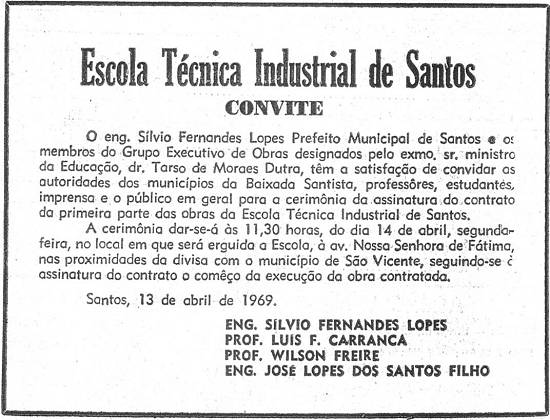 Publicado em 5 de outubro de 1969 no antigo jornal Cidade de Santos