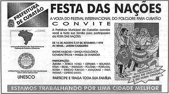 Publicado na edição de 16 a 23 de agosto de 1998 do jornal O Cubatão, de Cubatão, página 3