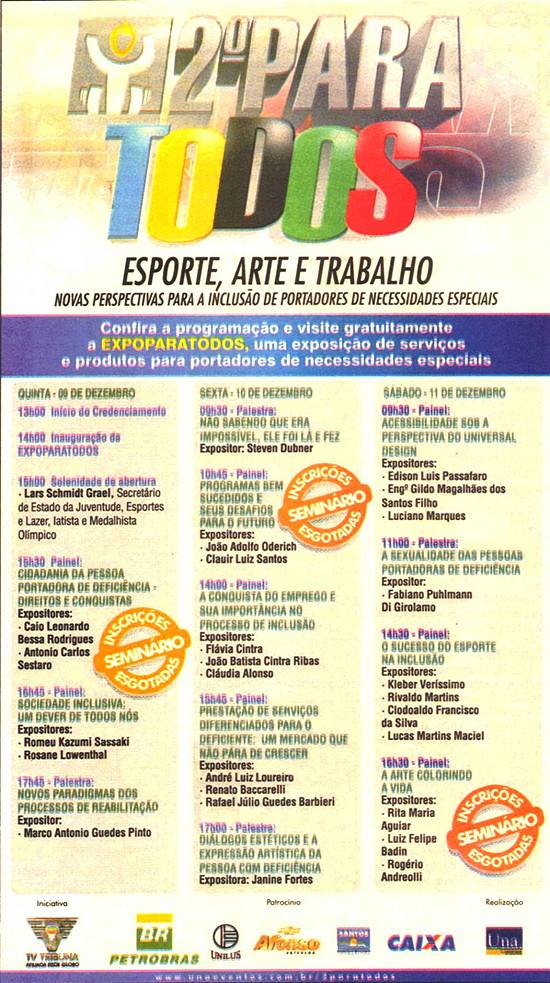 2º Esporte ParaTodos - inclusão social pelo esporte para portadores de deficiências