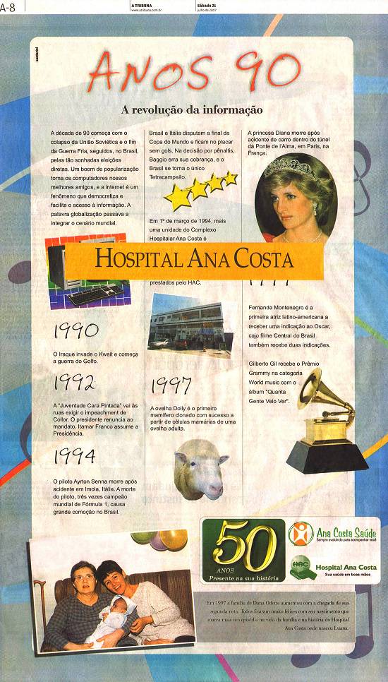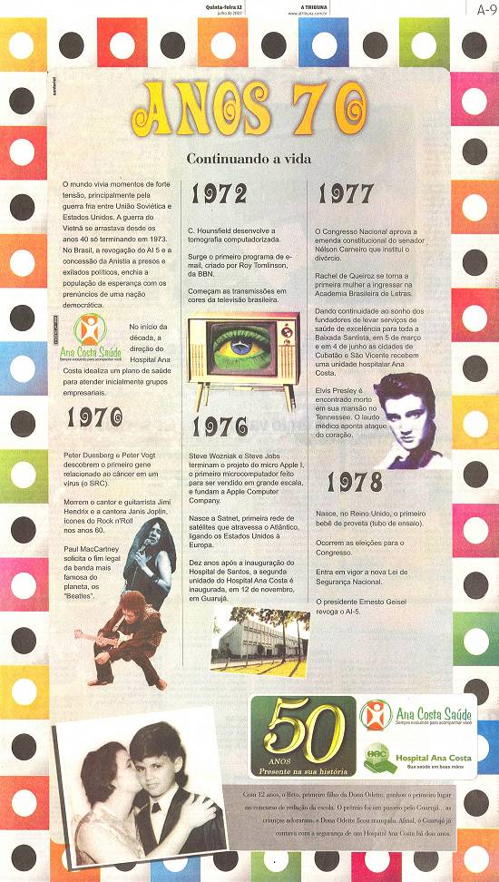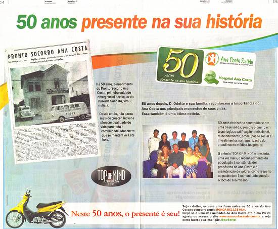Hospital Ana Costa - 50 anos - detalhe do anúncio de página dupla