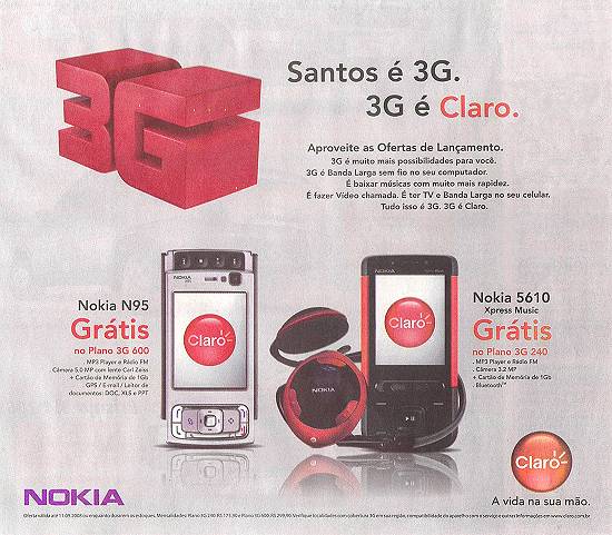 Celulares de 3ª Geração (3G) da Nokia com a operadora telefônica Claro