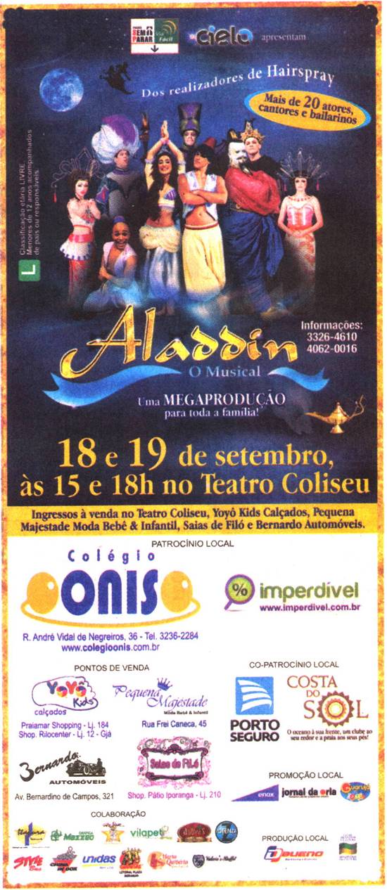 Teatro Coliseu e patrocinadores - peça musical Aladdin