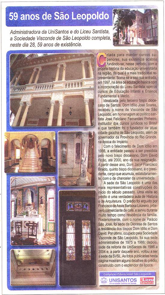 Sociedade Visconde de São Leopoldo: 59 anos (Unisantos, Liceu Santista)