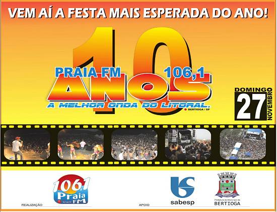Rádio Praia FM 106,1, de Bertioga - 10 anos - festa de aniversário