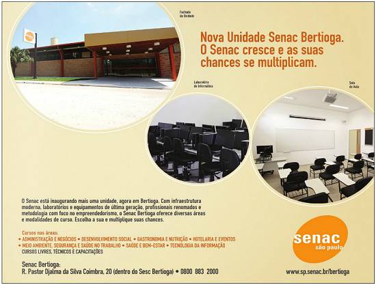 Serviço Nacional de Aprendizagem Comercial (Senac) criou em 20/10/2011 unidade em Bertioga