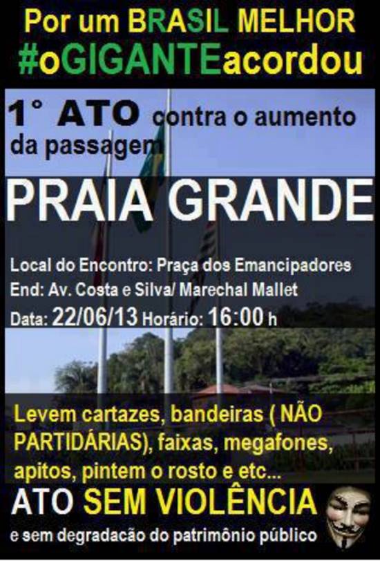 Protesto nacional em Praia Grande - convocação divulgada na rede social FaceBook, na Internet