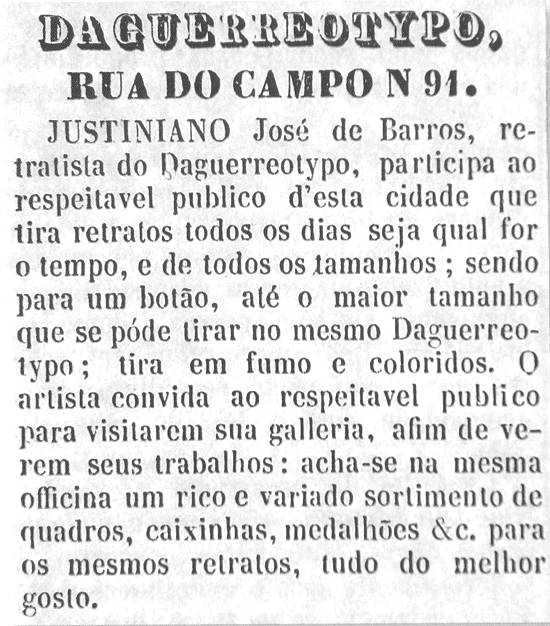 36, informava que fazia retratos por meio de um novo sistema de daguerreótipo "com a mais perfeita semelhança e de