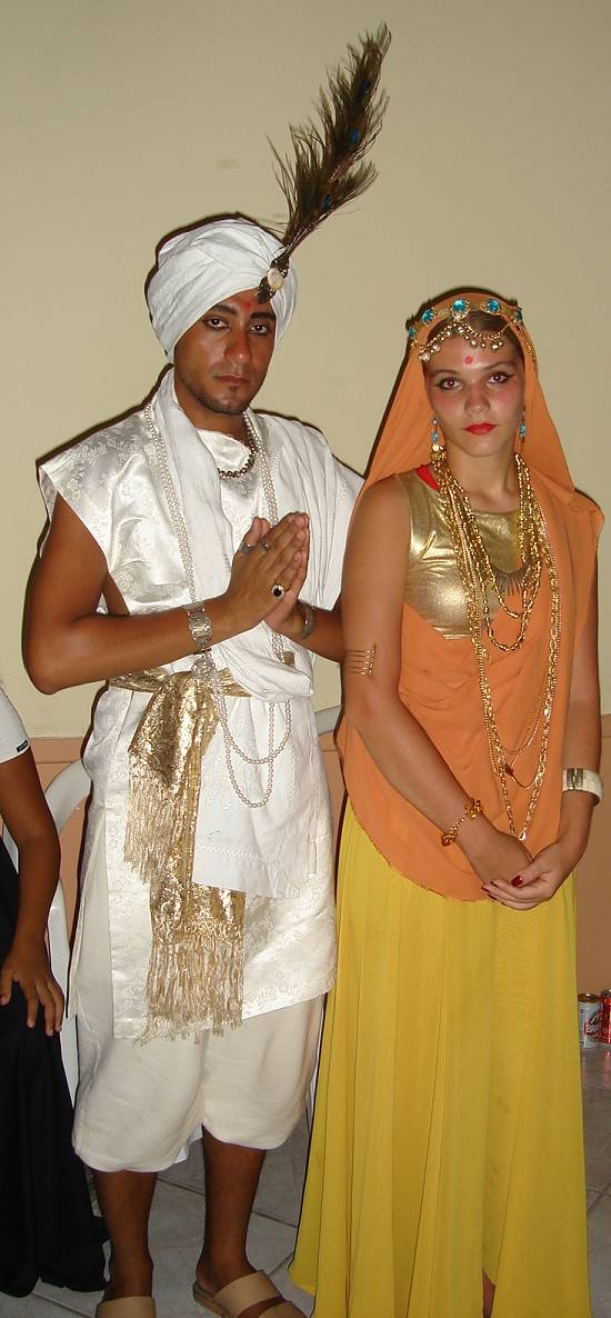 a tiara e o colar de flores), o deus jovem e que espalha a felicidade e bondade e que é adorado em toda a Índia, e professora Mirella representando