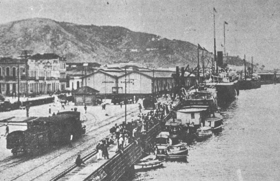 Só mais de uma dúzia de anos depois viram os santistas a chegada da primeira locomotiva ao Valongo, à estação construída no lugar ocupado anteriormente por uma ala do Convento de S. Antonio e, cremos bem, não foi estranho a este melhoramento o promotor do primeiro caminho de ferro brasileiro.