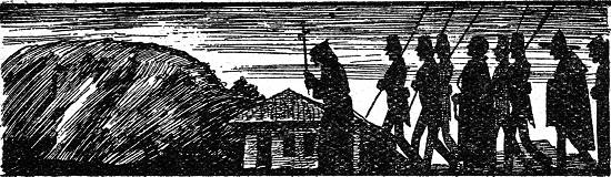 Uma buzina toca rija. Bordões batem pesadamente na terra dura. Um tiro de mosquete estoura no ar. E a Bandeira parte cheia de heroísmo e sonho na manhã clara, entre repiques