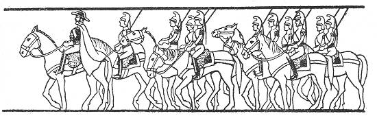 Pelas pedras de limonito bate uma cavalgada marcial. Na frente um moço de costeletas pretas, com o peito constelado de grãs-cruzes, passa a cavalo, num luzir de dragonas do seu