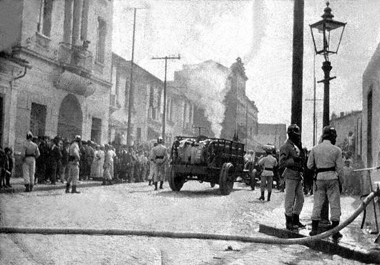 Combate a incêndio no Centro santista, por volta de 1920