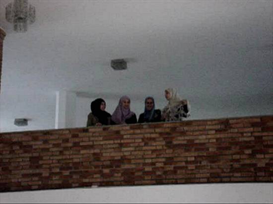 Sheick Salah Muhy Otman Saad, em sua pregação. No mezanino da mesquita, a ala feminina