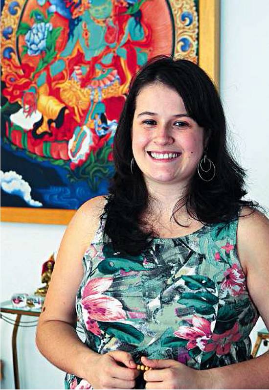 Ela frequenta o Centro de Budismo Kadampa Lamrim, de Santos, uma vez por semana, lê livros sobre a tradição, medita todos os dias e acredita que sua vida melhorou em diversos aspectos, "No namoro, percebi que não devo querer que o parceiro me siga e goste de tudo que me interessa. Passei a respeitá-lo mais. A bagunça no meu quarto diminuiu e até emagreci. Isso porque a minha ansiedade estava na mente. Não adiantava cuidar somente do corpo".