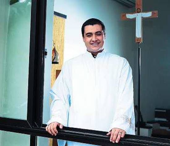 Aos 18 anos, Thiago Miranda comemora a entrada no seminário, em Santos