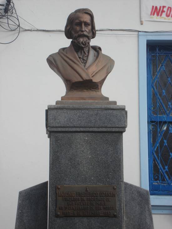 Vicente de Paulo, no interior da área que a entidade ocupa na Avenida Rodrigues Alves, há esta herma de seu fundador, Antonio Frederico Ozanam,