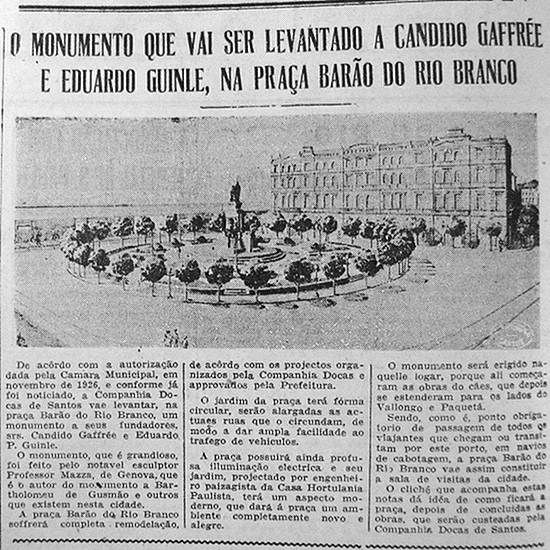 conforme já foi noticiado, a Companhia Docas de Santos vai levantar, na Praça Barão do Rio Branco, um monumento a seus fundadores, srs. Cândido