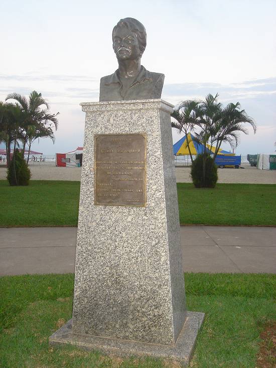 A escultura foi colocada próximo à estátua de Vicente de Carvalho, num canteiro do jardim da praia em que também foi feita a homenagem à poetisa Maria José Aranha de Rezende. Vândalos acrescentaram um bigode com tinta...