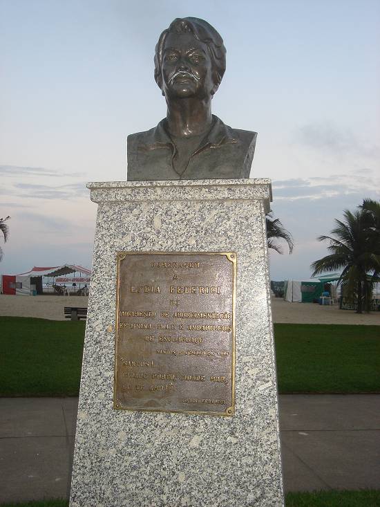 A placa cita: "Homenagem a Lydia Federici do Movimento de Arregimentação Feminina - MAF - e Andarilhos de Enguaguaçu. Santos, novembro de 1995. 'Santos!... Cidade porto, cidade mar, eu te amo!' Lydia Federici"