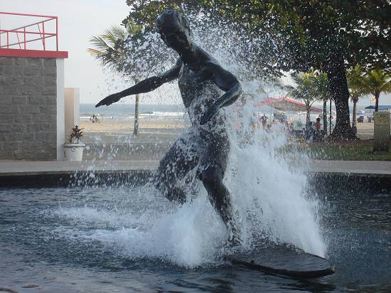 Defronte ao posto de salvamento número 2, entre os canais 2 (Av. Bernardino de Campos) e 1 (Av. Pinheiro Machado), foi instalado em 2001 este monumento aos surfistas. O local, denominado Praça do Surfe, ganhou depois uma segunda estátua, situada nas imediações, ao lado do mesmo posto de salvamento: